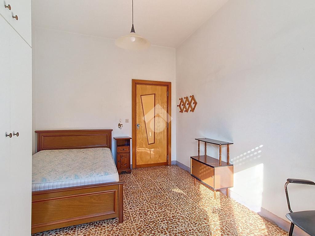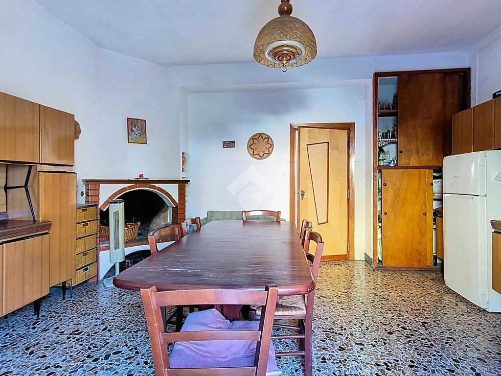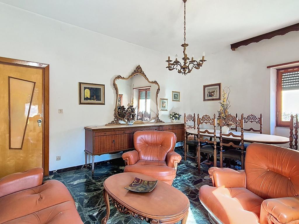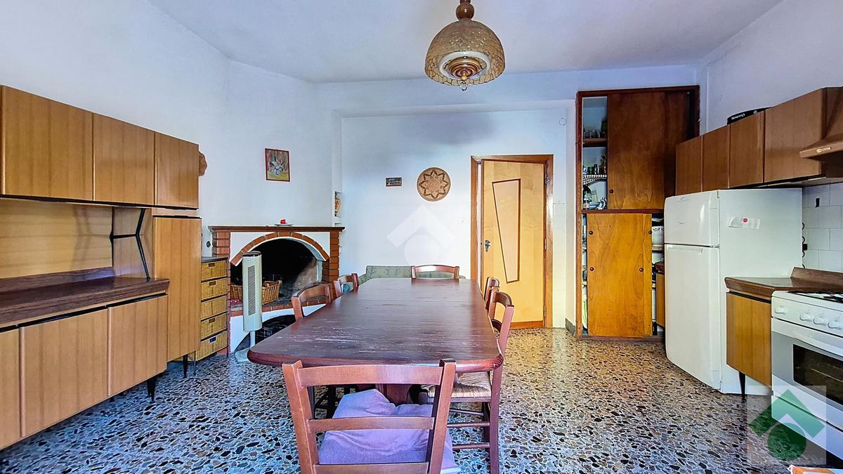 Il trilocale, di circa 81 m², è anch’esso situato al primo piano e accessibile dal vano scala. È composto da cucina con camino, camere da letto, bagno finestrato e balcone. L’appartamento è completamente da ristrutturare, rappresentando un’interessante opportunità per chi desidera personalizzare gli spazi o creare una seconda unità da mettere a reddito.