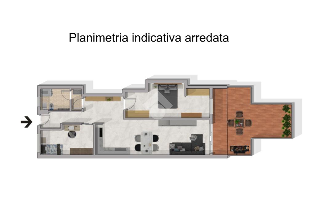 Il punto di forza di questa soluzione è il terrazzo ampio e comodo, ideale per momenti di relax all’aperto.