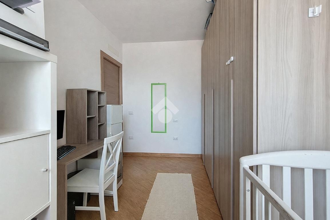 L’immobile si sviluppa su un unico livello e presenta una distribuzione degli spazi funzionale e ben organizzata: ingresso su disimpegno che conduce al soggiorno con cucina a vista, bagno finestrato con doccia, spaziosa camera matrimoniale e cameretta.