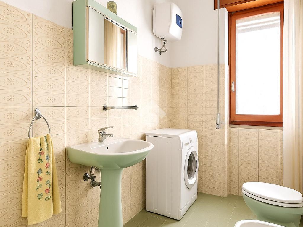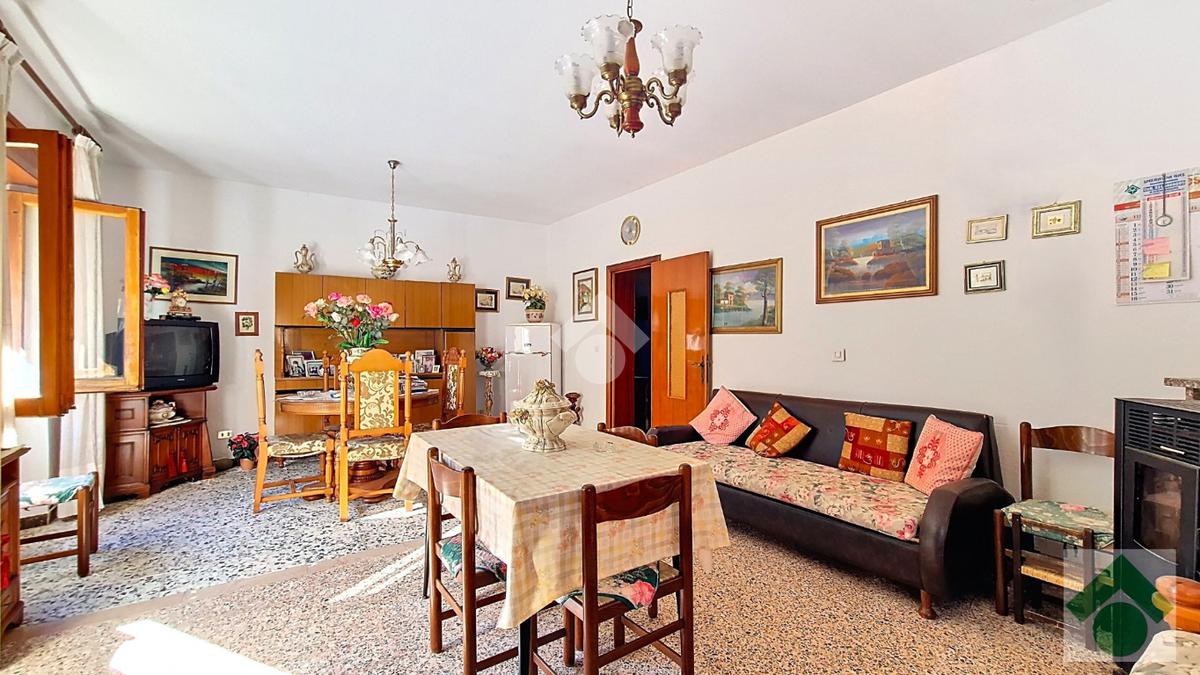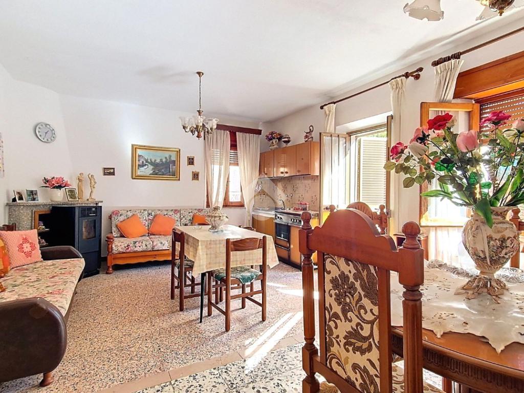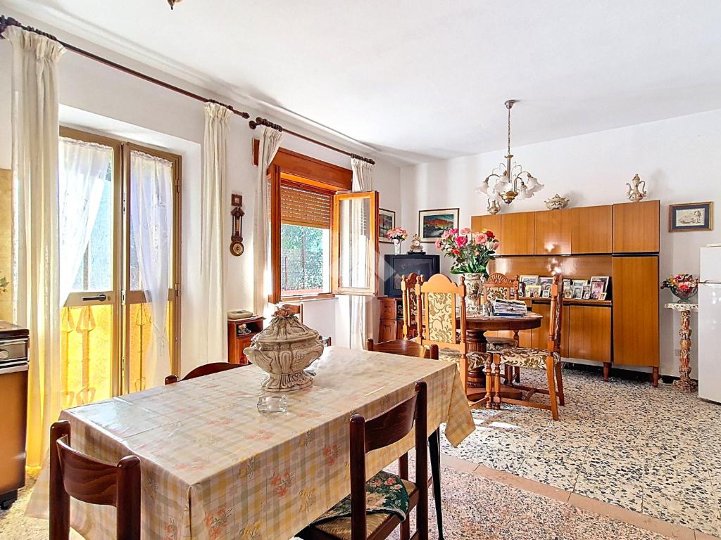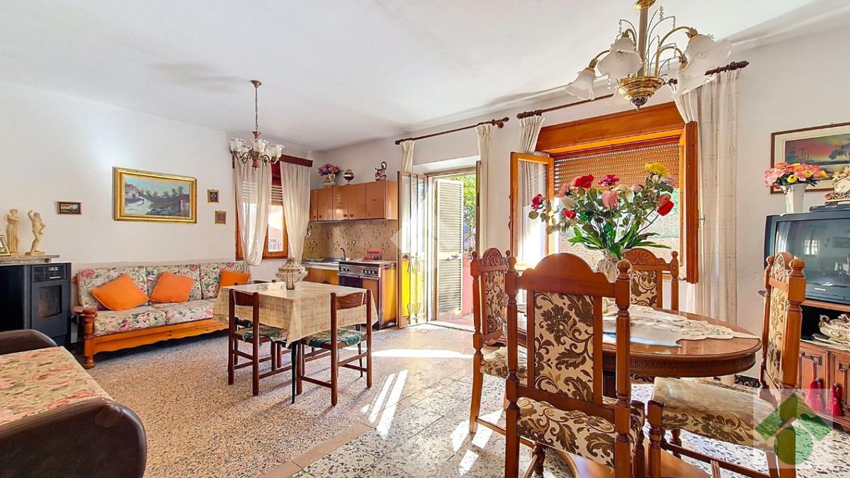 Situata al piano terra rialzato, la casa si distingue per gli spazi ampi e ben distribuiti. L’ingresso si apre su un comodo disimpegno centrale che conduce ai vari ambienti: un salotto luminoso, due camere da letto matrimoniali, un bagno finestrato, un soggiorno con cucina e un pratico ripostiglio.