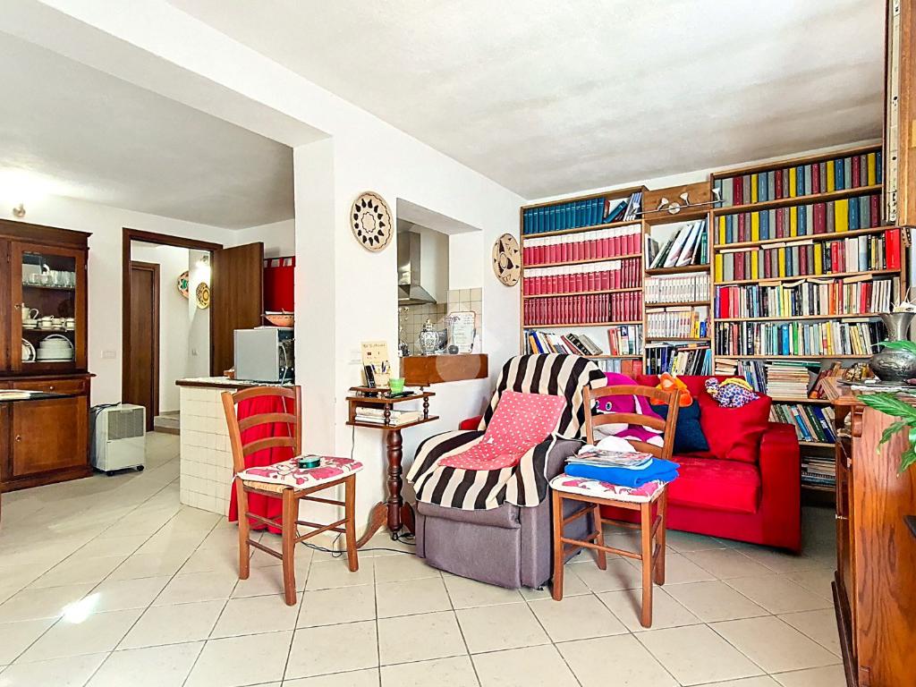 Al primo piano, troviamo una spaziosa camera matrimoniale, uno studiolo con balconcino, perfetto per leggere o lavorare in tranquillità, e un bagno finestrato con doccia.