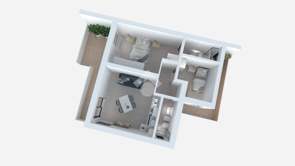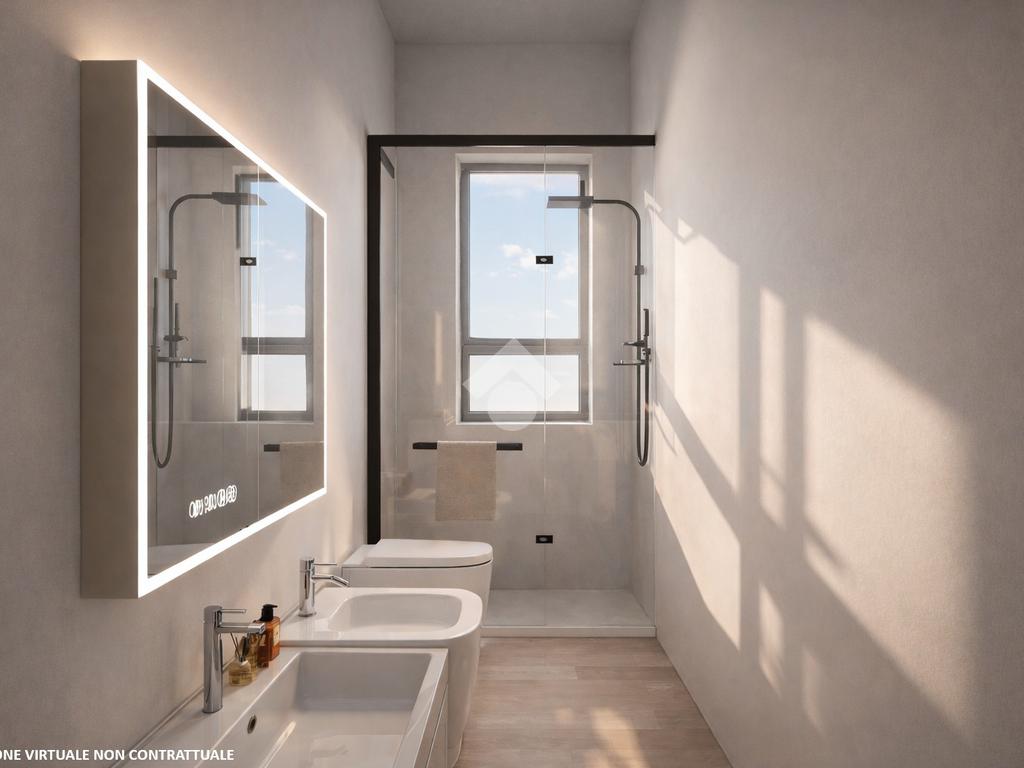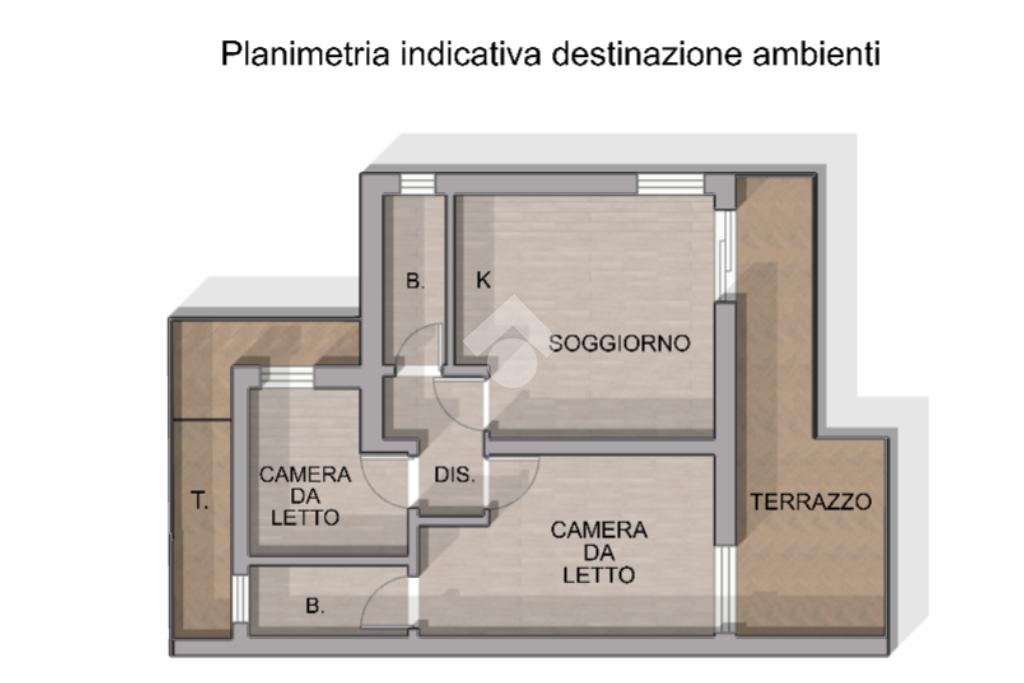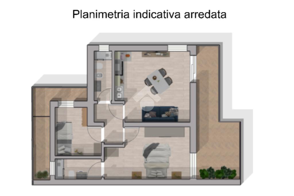 L’immobile offre una generosa metratura interna che consente una distribuzione funzionale e moderna degli spazi: è possibile realizzare un luminoso soggiorno con angolo cottura, due camere da letto – una matrimoniale con bagno en suite e una singola – oltre a un secondo bagno a servizio della zona giorno. Completano la proprietà due terrazzi, ideali per garantire maggiore luminosità e piacevoli sfoghi esterni.