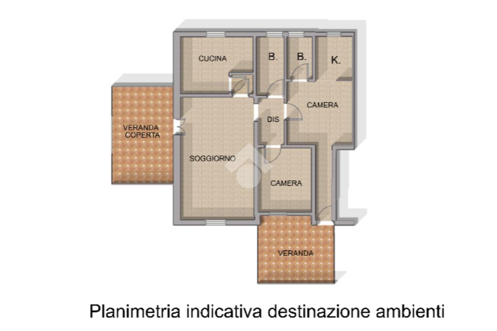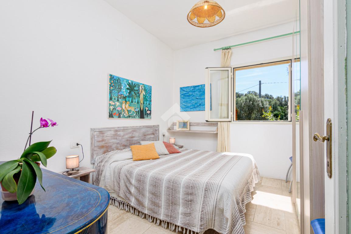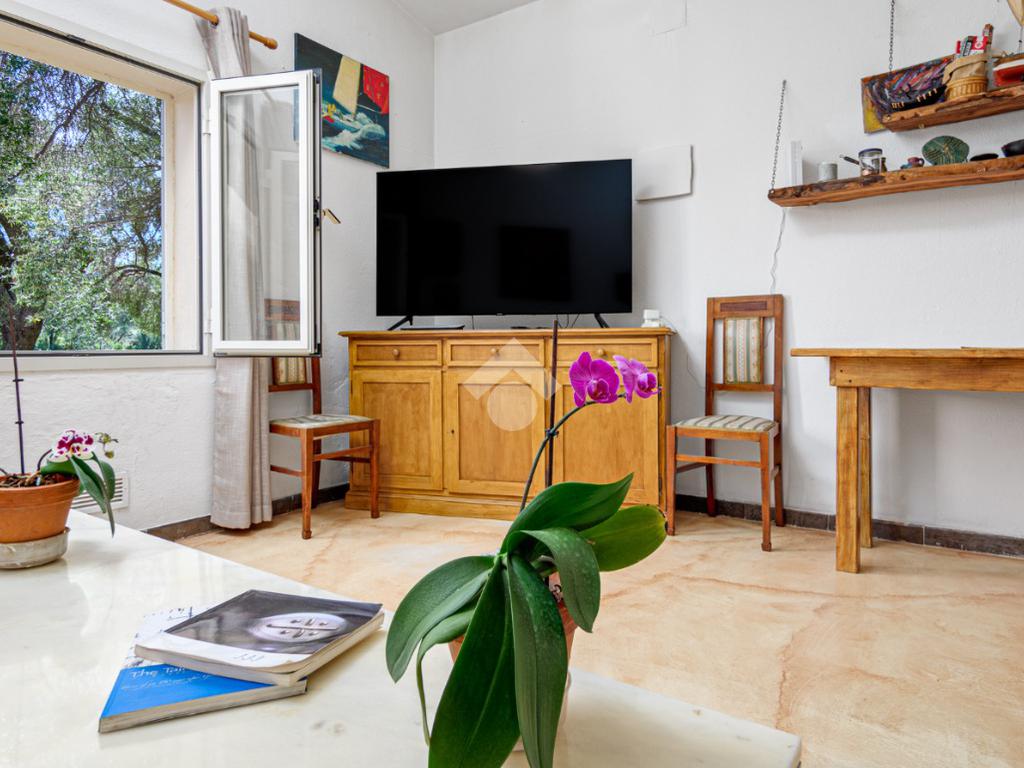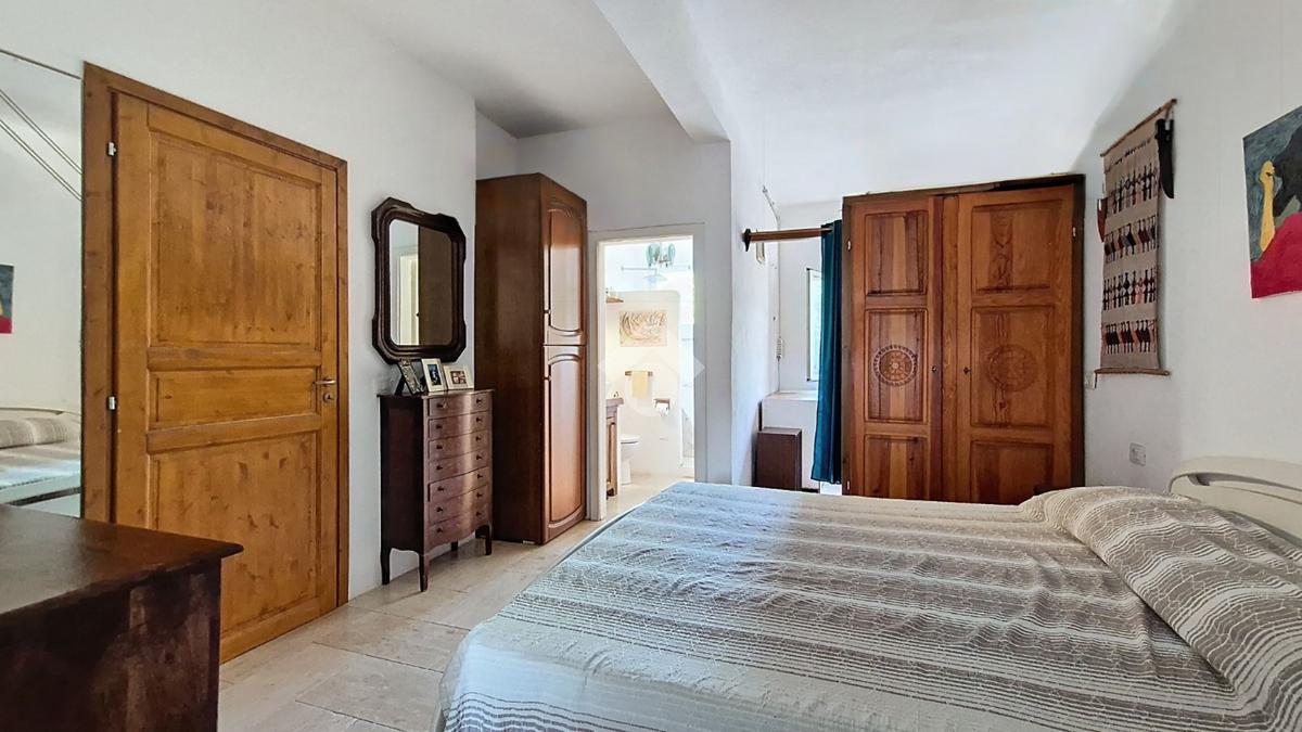 Attraverso la veranda si accede ad un luminoso soggiorno dotato di camino e collegato a una cucina. Un disimpegno conduce alla prima camera da letto matrimoniale e al bagno finestrato con doccia.